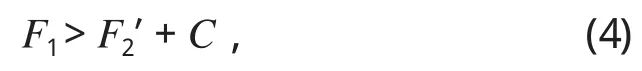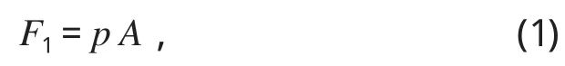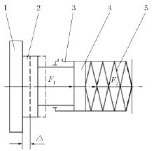 如图1所示,F1为油压力,F2为弹簧预压缩力。显而易见,盘形制动器是靠油压力 F1松闸,弹簧预压缩力 F2制动来实现其功能的。