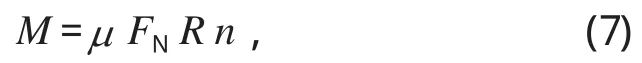式中:μ 为摩擦因数;R 为制动半径,m;n 为闸瓦个数。