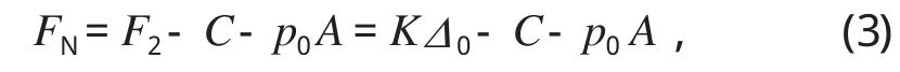 式中:F2′为油压力 p=pn时碟簧的压缩力,N;Δ′为油压力 p=pn时碟簧的压缩量,m。