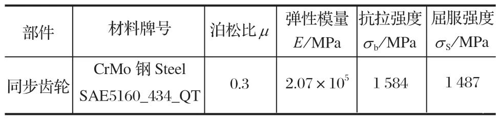 式中,各相关参数及其含义可由《机械设计手册》查得。同步齿轮材料参数如表2所列。